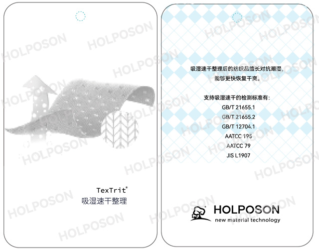 HOLPOSON® Aquasoft 適用于棉及混紡織物的吸濕速干功能整理劑 ,經(jīng)本品處理后的織物,具有優(yōu)良的手感,同時(shí)賦予纖維素 纖維及混紡織物具有良好的親水、吸濕排汗性能。HOLPOSON® Aquasoft賦予天然纖維及其混紡織物優(yōu)良的吸濕特性,用于絨類織物手感柔軟、蓬松.
