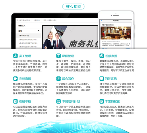 企業(yè)學習管理軟件網(wǎng)埔e-training是青島同游網(wǎng)絡技術有限公司根據(jù)自身多年的教育平臺開發(fā)經(jīng)驗以及深入調(diào)研企業(yè)培訓需求后自主研發(fā)的一套針對企業(yè)內(nèi)部培訓管理的專用軟件,可以讓企業(yè)將自身知識及培訓資源進行整合,形成線上課程(圖文、視頻、直播等形式),員工通過手機或電腦即可線上學習并完成考核。