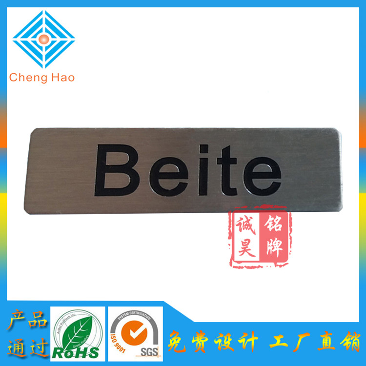 不銹鋼銘牌也叫腐蝕標牌,不銹鋼腐蝕銘牌,腐刻標牌,都是采用腐蝕工藝制作而成,沖壓不銹鋼標牌,腐蝕商標,腐蝕logo,不銹鋼鏡面商標,拉絲不銹鋼銘牌,名稱不同,我們很多客戶叫法不一樣,我們專業(yè)全部統(tǒng)一出名稱方便大家了解。
